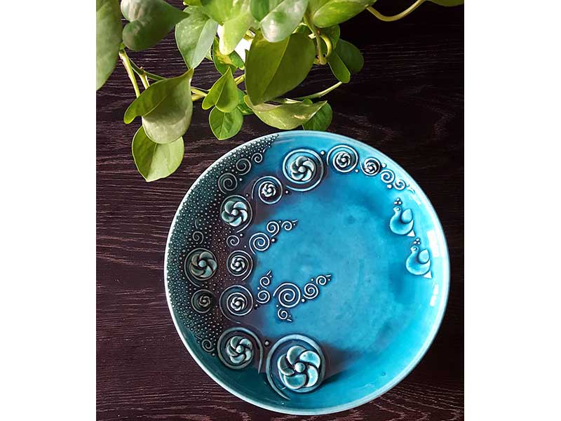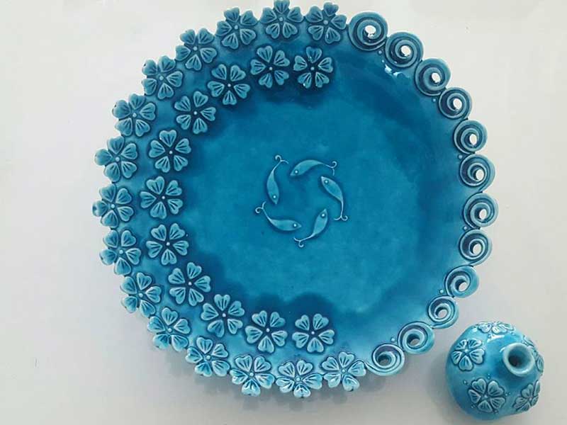 طرح ونقش این آثار عمدتا الهام گرفته شده از نقوش اصیل ایرانی وپیام آن احیا,هنر سفالگری ایران وورود این هنر در زندگی روزمره مردم است.