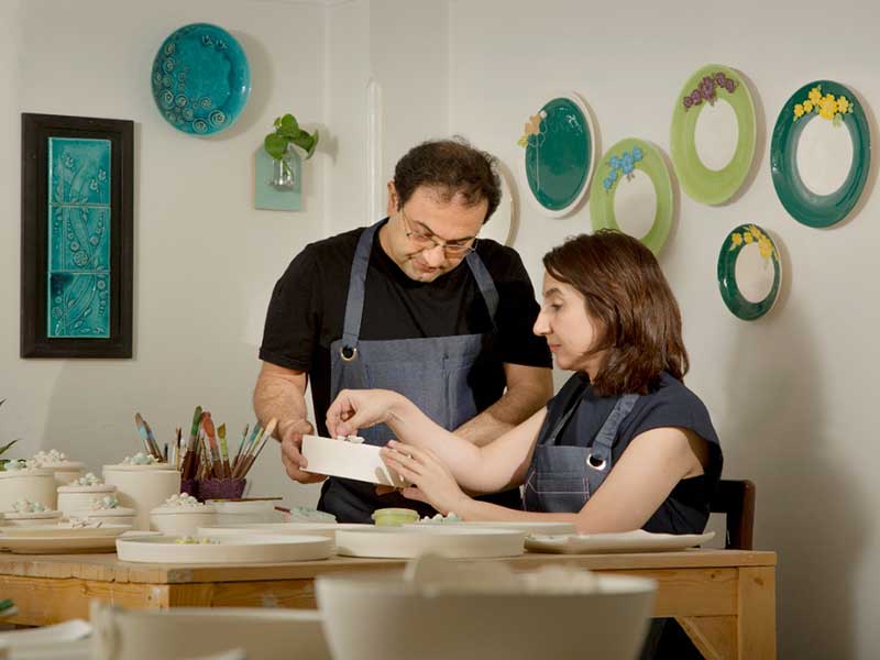 آشنایی با فنون سفالگری از سال 1376 درمحضر استادان ارجمند برادران قابچی وسرکارخانم تطهیری مقدم در تبریز.